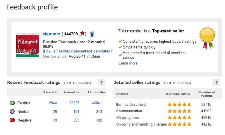 - Provjera prodavca se veoma lako može obaviti pregledom njegovih prethodnih prodaja i ocjena koje je dobio od kupaca. Ocjenjuje se opis artikla, komunikacija, vrijeme slanje i troškovi pakovanja i slanja.